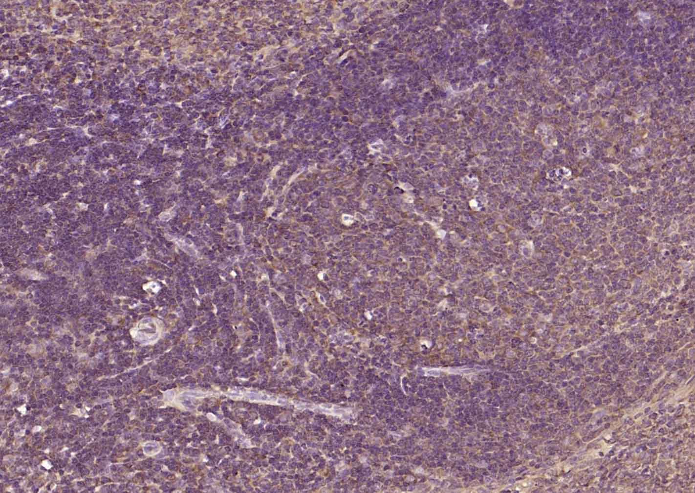 Paraformaldehyde-fixed, paraffin embedded (rat spleen); Antigen retrieval by boiling in sodium citrate buffer (pH6.0) for 15min; Block endogenous peroxidase by 3% hydrogen peroxide for 20 minutes; Blocking buffer (normal goat serum) at 37°C for 30min; Incubation with (TGF beta Receptor II) Polyclonal Antibody, Unconjugated (bs-0117R) at 1:200 overnight at 4°C, followed by operating according to SP Kit(Rabbit) (sp-0023) instructionsand DAB staining.