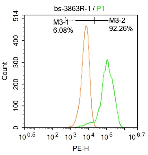 Primary Antibody (green line): Rabbit Anti-ROR Gamma antibody (bs-3863R)