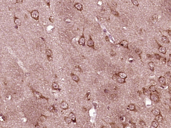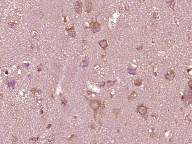 Paraformaldehyde-fixed, paraffin embedded (rat brain tissue); Antigen retrieval by boiling in sodium citrate buffer (pH6.0) for 15min; Block endogenous peroxidase by 3% hydrogen peroxide for 20 minutes; Blocking buffer (normal goat serum) at 37°C for 30min; Antibody incubation with (MEK1 (Thr386)) Polyclonal Antibody, Unconjugated (bs-5413R) at 1:400 overnight at 4°C, followed by operating according to SP Kit(Rabbit) (sp-0023) instructionsand DAB staining.