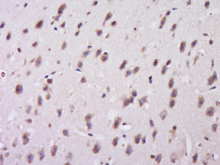 Paraformaldehyde-fixed, paraffin embedded (Mouse brain); Antigen retrieval by boiling in sodium citrate buffer (pH6.0) for 15min; Block endogenous peroxidase by 3% hydrogen peroxide for 20 minutes; Blocking buffer (normal goat serum) at 37°C for 30min; Antibody incubation with (P85B) Polyclonal Antibody, Unconjugated (bs-4160R) at 1:400 overnight at 4°C, followed by operating according to SP Kit(Rabbit) (sp-0023) instructions and DAB staining.