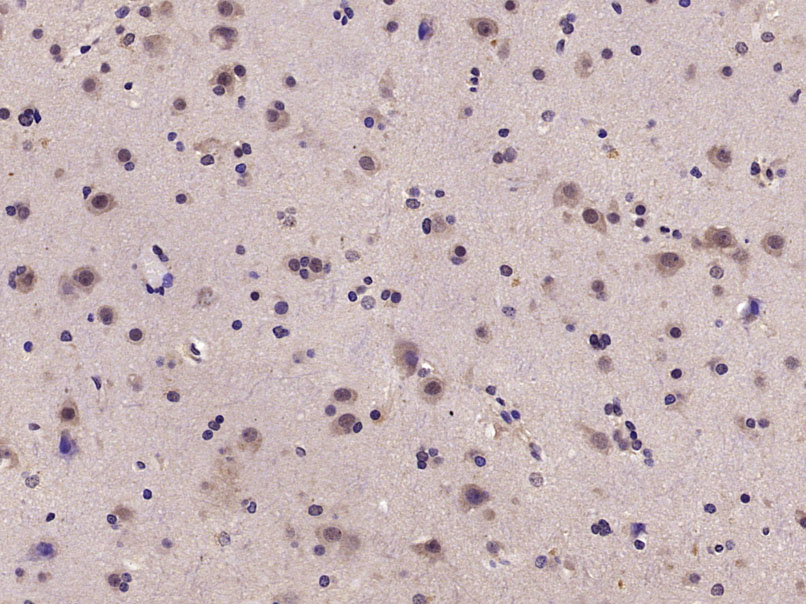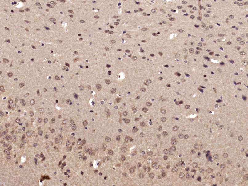 Paraformaldehyde-fixed, paraffin embedded (Mouse brain); Antigen retrieval by microwave in sodium citrate buffer (pH6.0) ; Block endogenous peroxidase by 3% hydrogen peroxide for 30 minutes; Blocking buffer (3% BSA) at RT for 30min; Antibody incubation with (phospho-RPS6KB1(Ser417)) Polyclonal Antibody, Unconjugated (bs-5668R) at 1:400 overnight at 4°C, followed by conjugation to the secondary antibody (labeled with HRP)and DAB staining.