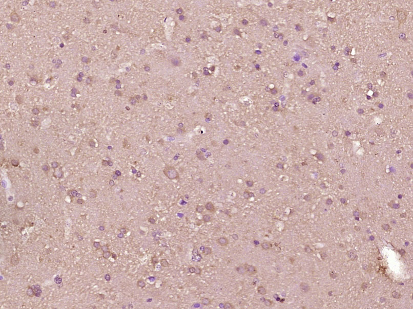 Paraformaldehyde-fixed, paraffin embedded (Mouse brain); Antigen retrieval by boiling in sodium citrate buffer (pH6.0) for 15min; Block endogenous peroxidase by 3% hydrogen peroxide for 20 minutes; Blocking buffer (normal goat serum) at 37°C for 30min; Antibody incubation with (Arginase II) Polyclonal Antibody, Unconjugated (bs-11397R) at 1:400 overnight at 4°C, followed by operating according to SP Kit(Rabbit) (sp-0023) instructionsand DAB staining.