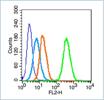 Secondary Antibody (white blue line): Goat anti-rabbit IgG-PE,Dilution: 1μg /test.