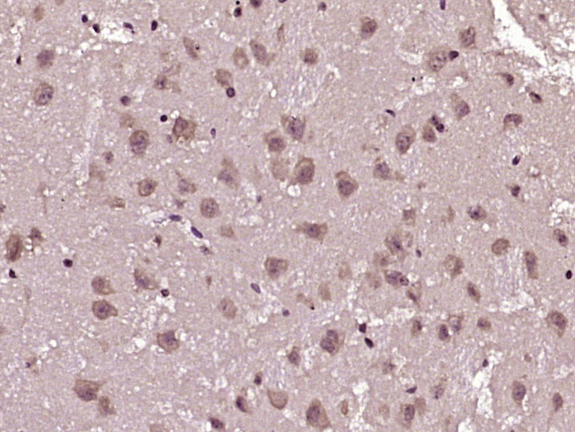Paraformaldehyde-fixed, paraffin embedded (mouse brain tissue); Antigen retrieval by boiling in sodium citrate buffer (pH6.0) for 15min; Block endogenous peroxidase by 3% hydrogen peroxide for 20 minutes; Blocking buffer (normal goat serum) at 37°C for 30min; Antibody incubation with (YWHAB) Polyclonal Antibody, Unconjugated (bs-13773R) at 1:400 overnight at 4°C, followed by operating according to SP Kit(Rabbit) (sp-0023) instructionsand DAB staining.