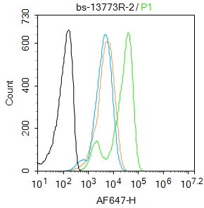 Primary Antibody (green line): Rabbit Anti-phospho-14-3-3 beta + zeta (Ser186) antibody (bs-13773R),Dilution: 0.2μg /10^6 cells;