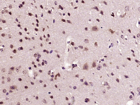 Paraformaldehyde-fixed, paraffin embedded (mouse brain tissue); Antigen retrieval by boiling in sodium citrate buffer (pH6.0) for 15min; Block endogenous peroxidase by 3% hydrogen peroxide for 20 minutes; Blocking buffer (normal goat serum) at 37°C for 30min; Antibody incubation with (ZCCHC10) Polyclonal Antibody, Unconjugated (bs-18533R) at 1:400 overnight at 4°C, followed by operating according to SP Kit(Rabbit) (sp-0023) instructionsand DAB staining.