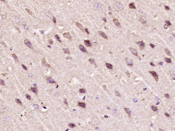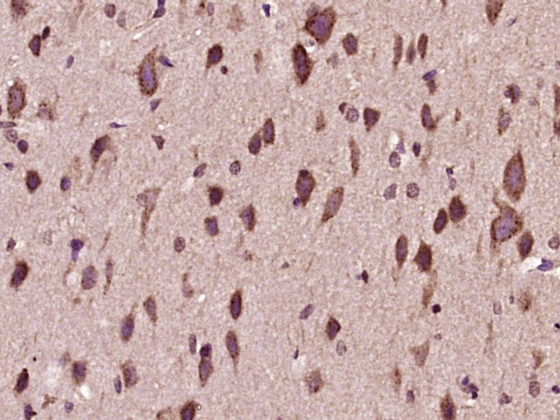 Paraformaldehyde-fixed, paraffin embedded (mouse brain tissue); Antigen retrieval by boiling in sodium citrate buffer (pH6.0) for 15min; Block endogenous peroxidase by 3% hydrogen peroxide for 20 minutes; Blocking buffer (normal goat serum) at 37°C for 30min; Antibody incubation with (PTPD1) Polyclonal Antibody, Unconjugated (bs-19587R) at 1:400 overnight at 4°C, followed by operating according to SP Kit(Rabbit) (sp-0023) instructionsand DAB staining.