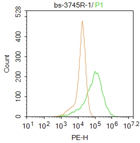 Primary Antibody (green line): Rabbit Anti-phospho-HSF1 (Ser326) antibody (bs-3745)
