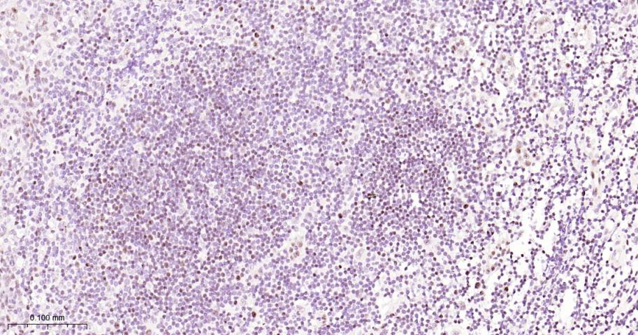 Paraformaldehyde-fixed, paraffin embedded Human Tonsil; Antigen retrieval by boiling in sodium citrate buffer (pH6.0) for 15 min; The section was incubated with FOXP1 Monoclonal Antibody, Unconjugated (bsm-52078R) at 1:200 overnight at 4°C, followed by conjugation to the bs-0295G-HRP and DAB (C-0010) staining.