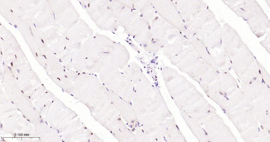 Paraformaldehyde-fixed, paraffin embedded Mouse Skeletal muscle; Antigen retrieval by boiling in sodium citrate buffer (pH6.0) for 15 min; The section was incubated with FOXP1 Monoclonal Antibody, Unconjugated (bsm-52078R) at 1:200 overnight at 4°C, followed by conjugation to the bs-0295G-HRP and DAB (C-0010) staining.