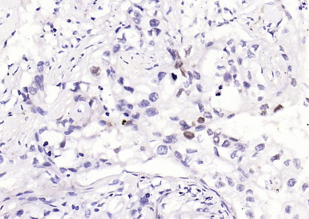 Paraformaldehyde-fixed, paraffin embedded (Human skin cancer); Antigen retrieval by boiling in sodium citrate buffer (pH6.0) for 15min; Block endogenous peroxidase by 3% hydrogen peroxide for 20 minutes; Blocking buffer (normal goat serum) at 37°C for 30min; Antibody incubation with (phospho-c-Jun (Ser63)) Monoclonal Antibody, Unconjugated (bsm-52141R) at 1:200 overnight at 4°C, followed by operating according to SP Kit(Rabbit) (sp-0023) instructionsand DAB staining.