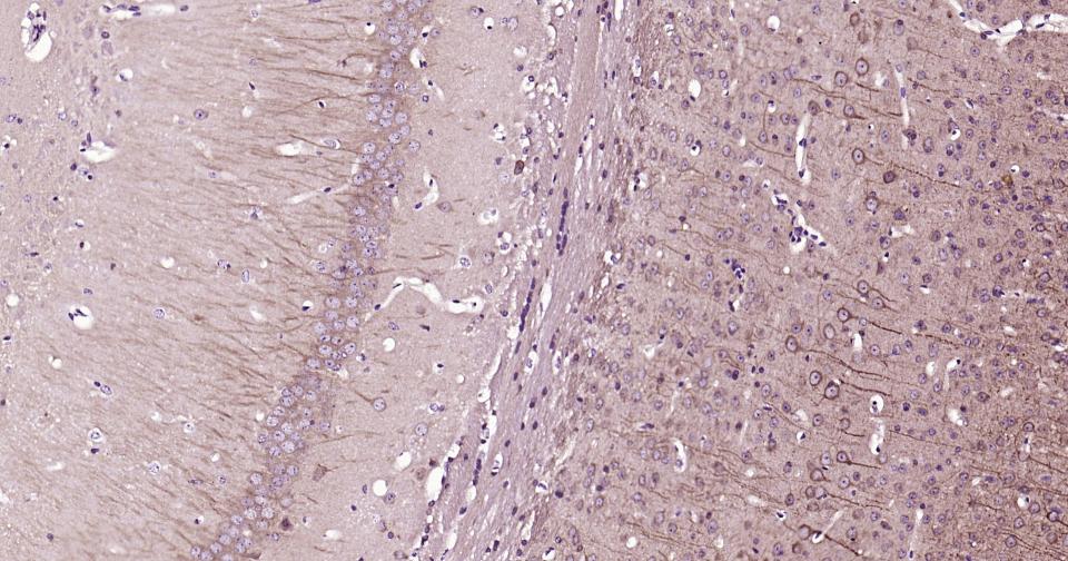 Paraformaldehyde-fixed, paraffin embedded Rat Cerebellum; Antigen retrieval by boiling in sodium citrate buffer (pH6.0) for 15 min; Antibody incubation with NF-H Monoclonal Antibody, Unconjugated(bsm-52851R) at 1:200 overnight at 4°C, followed by conjugation to the bs-0295G-HRP and DAB (C-0010) staining.