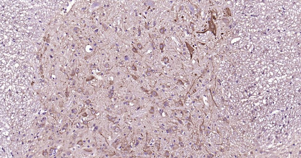 Paraformaldehyde-fixed, paraffin embedded Rat Spinal Cord; Antigen retrieval by boiling in sodium citrate buffer (pH6.0) for 15 min; Antibody incubation with NF-H Monoclonal Antibody, Unconjugated(bsm-52851R) at 1:200 overnight at 4°C, followed by conjugation to the bs-0295G-HRP and DAB (C-0010) staining.