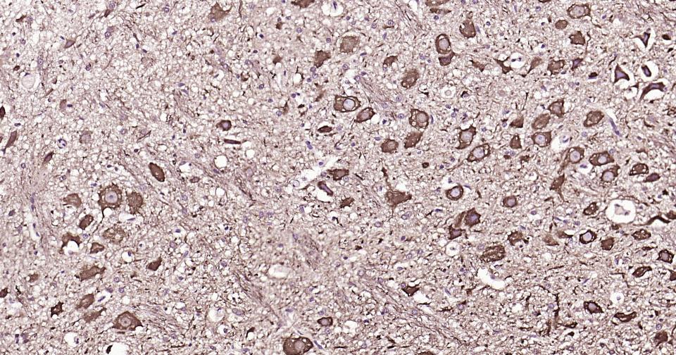 Paraformaldehyde-fixed, paraffin embedded Human Cerebrum; Antigen retrieval by boiling in sodium citrate buffer (pH6.0) for 15 min; Antibody incubation with NF-H Monoclonal Antibody, Unconjugated(bsm-52851R) at 1:200 overnight at 4°C, followed by conjugation to the bs-0295G-HRP and DAB (C-0010) staining.