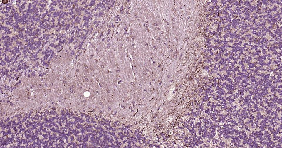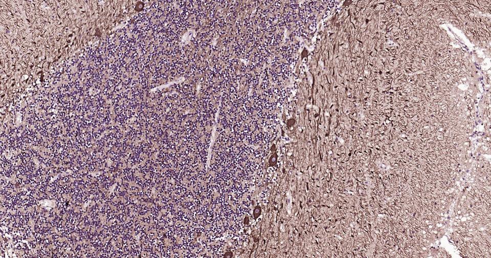 Paraformaldehyde-fixed, paraffin embedded Human Cerebellum; Antigen retrieval by boiling in sodium citrate buffer (pH6.0) for 15 min; Antibody incubation with NF-H Monoclonal Antibody, Unconjugated(bsm-52851R) at 1:200 overnight at 4°C, followed by conjugation to the bs-0295G-HRP and DAB (C-0010) staining.