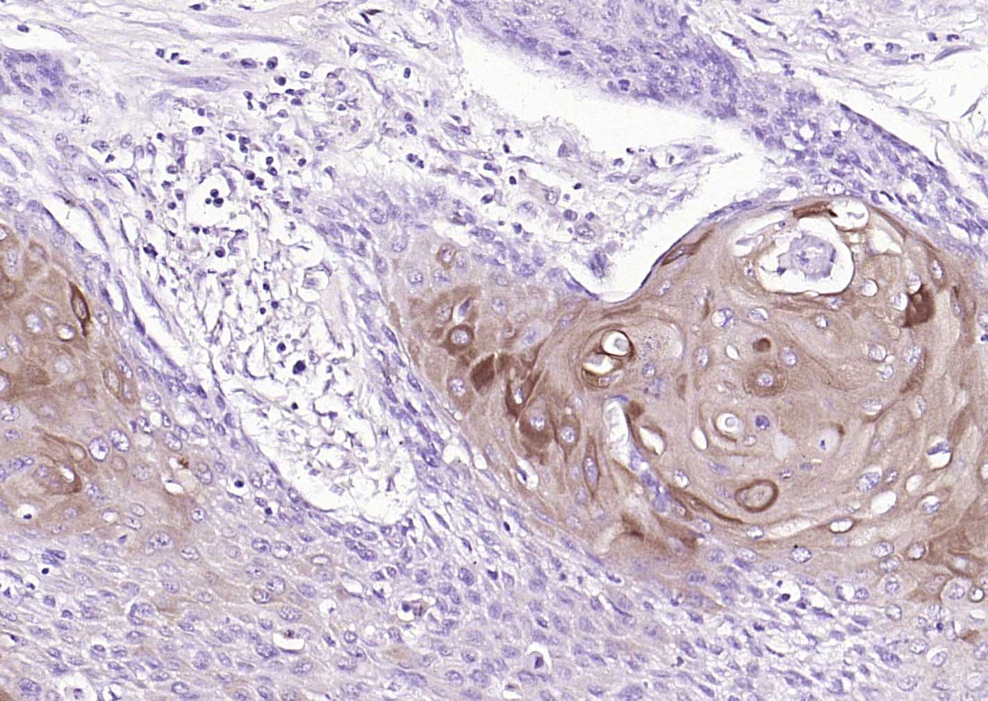 Paraformaldehyde-fixed, paraffin embedded (human cervical carcinoma); Antigen retrieval by boiling in EDTA buffer (Ph9.0) for 15min; Block endogenous peroxidase by 3% hydrogen peroxide for 20 minutes; Blocking buffer (normal goat serum) at 37°C for 30min; Incubation with (ALDH1A1) Monoclonal Antibody, Unconjugated (bsm-60321R) at 1:200 overnight at 4°C, followed by operating according to SP Kit(Rabbit) (sp-0023) instructionsand DAB staining.
