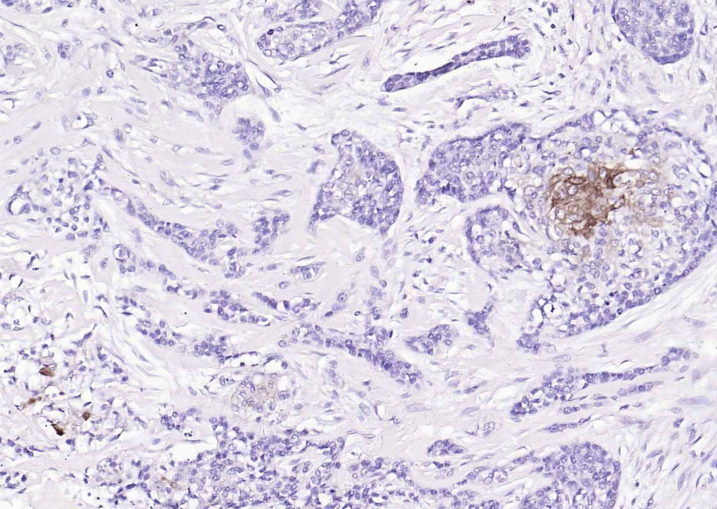 Paraformaldehyde-fixed, paraffin embedded (human breast carcinoma); Antigen retrieval by boiling in EDTA buffer (Ph9.0) for 15min; Block endogenous peroxidase by 3% hydrogen peroxide for 20 minutes; Blocking buffer (normal goat serum) at 37°C for 30min; Incubation with (ALDH1A1) Monoclonal Antibody, Unconjugated (bsm-60321R) at 1:200 overnight at 4°C, followed by operating according to SP Kit(Rabbit) (sp-0023) instructionsand DAB staining.