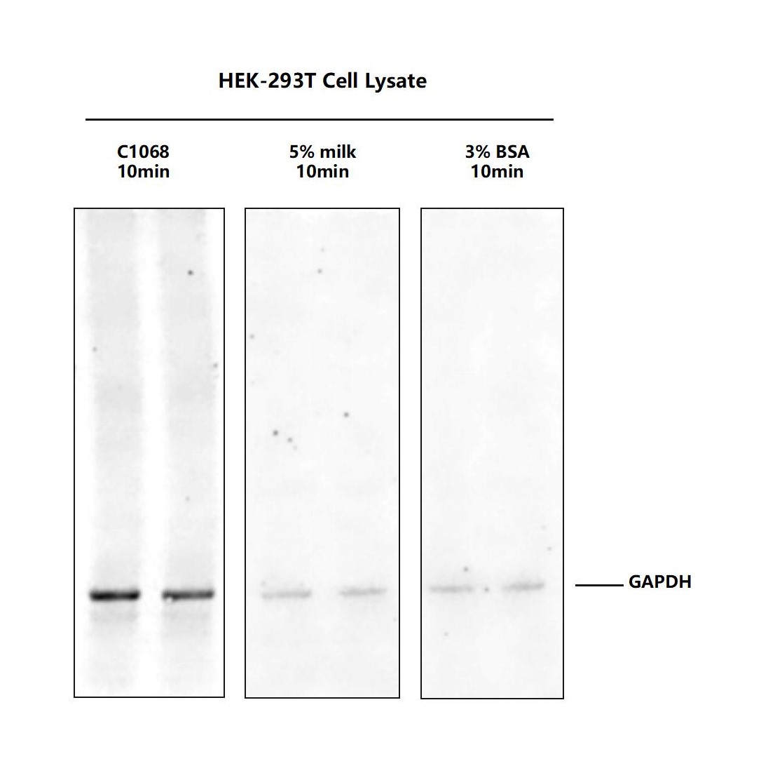 產(chǎn)品說(shuō)明 本產(chǎn)品專(zhuān)為快速高效封閉Western Blot轉印膜而設計,采用無(wú)蛋白配方,避免抗體與封閉劑的非特異結合,可最大程度地降低背景。同時(shí),本封閉液無(wú)內源的磷酸化蛋白及生物素,對磷酸化特異抗體及生物素檢測也不會(huì )產(chǎn)生干擾。本封閉液不與蛋白產(chǎn)生非特異性結合,因而只封閉膜而不會(huì )屏蔽樣品蛋白的抗體識別位點(diǎn),大大提高了抗體檢測靈敏度。實(shí)驗表明,本產(chǎn)品對許多抗體都有不同程度的信號增強作用。然而這種信號增強作用因抗體而異,對某一特定抗體,并不一定具有確定的信號增強作用。 注意:沒(méi)有任何一種封閉劑能適合所有抗原和抗體檢測系統。如出現本試劑不適合的抗體,請替換使用其它種類(lèi)的封閉劑如BSA或脫脂奶粉等。 產(chǎn)品特點(diǎn) 快速高效:5-10min快速完成封閉,只結合封閉轉印膜而不結合蛋白,因此不會(huì )屏蔽樣品蛋白的抗體識別位點(diǎn),與傳統的脫脂奶粉和BSA封閉相比信噪比更高; 性能可靠:無(wú)蛋白配方,與抗體無(wú)交叉反應; 應用范圍廣:無(wú)磷酸化蛋白,無(wú)生物素,尤其適合磷酸化特異抗體及生物素檢測系統; 節省抗體:使用本封閉液后,所需的最適抗體濃度低于常規使用濃度,可大大節省抗體使用量。 封閉方法 1. 完成轉膜后,將轉印膜放入到雜交孵育盒中,加入10-20ml TBS/T或PBS/T; 2. 往TBS/T或PBS/T中加入1/4體積的無(wú)蛋白快速封閉液,置于搖床輕輕搖動(dòng),室溫封閉約10min(即配即用); 注意:使用本品通常封閉5-15min即可;經(jīng)多種抗體的測試封閉10min的效果顯著(zhù)優(yōu)于常規的BSA封閉1h。對于一些背景非常高的抗體,可以嘗試將封閉時(shí)間延長(cháng)為30-60min。如有特殊需要,也可4℃封閉過(guò)夜。 3. 封閉后的膜即可用于一抗孵育等后續實(shí)驗。 注意事項 1. 為了您的安全和健康,請穿實(shí)驗服并戴一次性手套操作; 2. 本產(chǎn)品僅限科研使用。 |