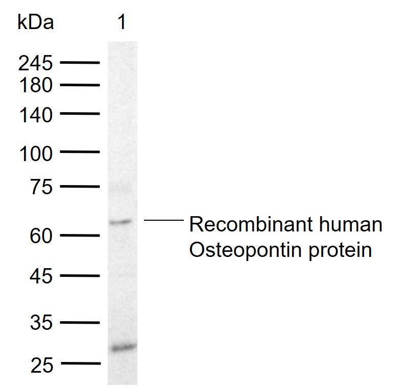 Lane 1: Recombinant human Osteopontin protein, C-His (HEK293)(bs-43600P)