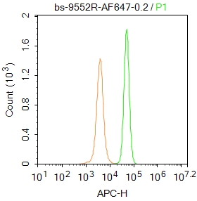 Primary Antibody (green line): Rabbit Anti-CXorf21 antibody (bs-9552R-FITC)